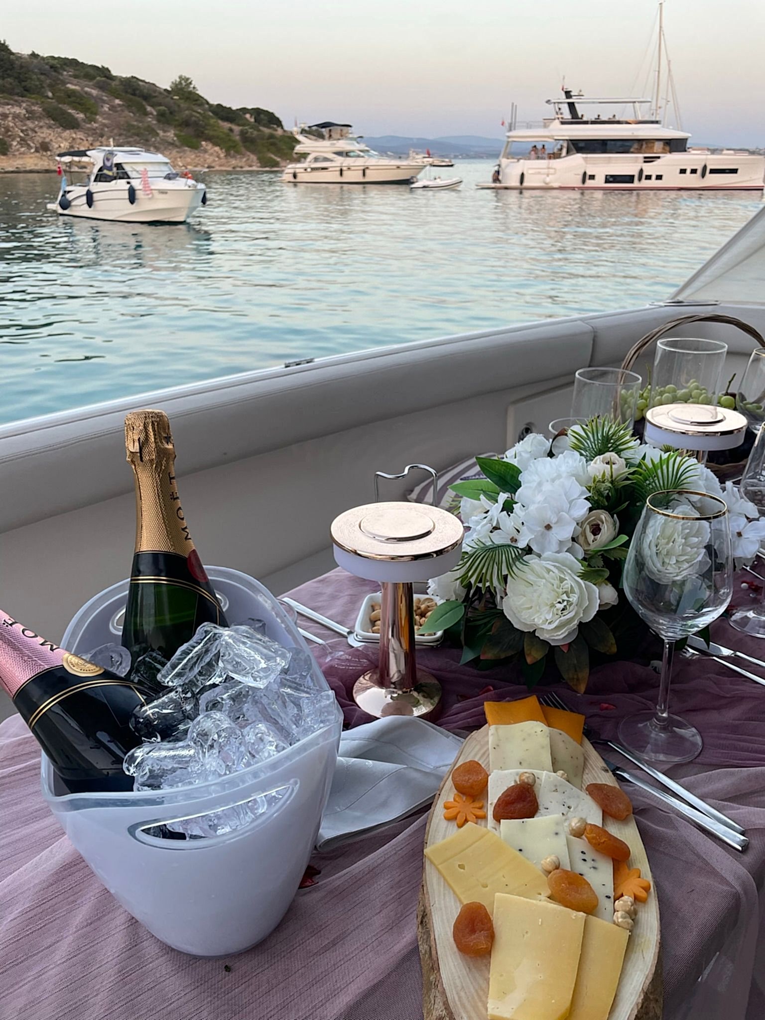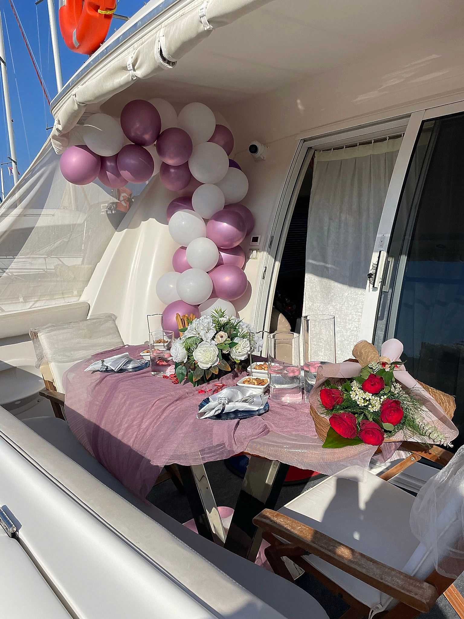 Muhteşem manzaraları ve eşi benzeri olmayan doğal güzellikleriyle, İzmir evlilik teklifi için cennet olarak öne çıkıyor. İzmir Yatta Evlilik Teklifi yapmak isteyen çiftler, İzmir Körfezi'nin sakin sularında hayatınızın yeni bir bölümüne geçeceksiniz. "En güzel evlenme teklifi nerede yapılır?" diye düşünüyorsanız, bu eşsiz günü planlamak için sizinle birlikte en ideal rotayı belirlemekten mutluluk duyarız. İzmir Yatta Evlilik Teklifi sırasında, çiftler güneşin batışının romantik ışığında veya yıldızların altında unutulmayacak anlar geçirebilirsiniz. Tek yapmanız gereken bir tektaş yüzük seçmek ve geri kalan her şeyi bizim organize etmemize izin vermek. Denizin ortasında, özenle süslenen bir yatta, özel bir akşam yemeği ve canlı müzik eşliğinde, sevdiğiniz kişiye evlenme teklifi yapmanın heyecanını yaşayabilirsiniz. Biz, bu özel günü mükemmel kılmak için her detayı düşünmüş olacağız. Zarif bir dekorasyon, lezzetli yemekler ve harika bir atmosfer. Kısacası İzmir yatta evlilik teklifi, aşk hikayenize mükemmel bir başlangıç yapmak için sizi bekliyor.